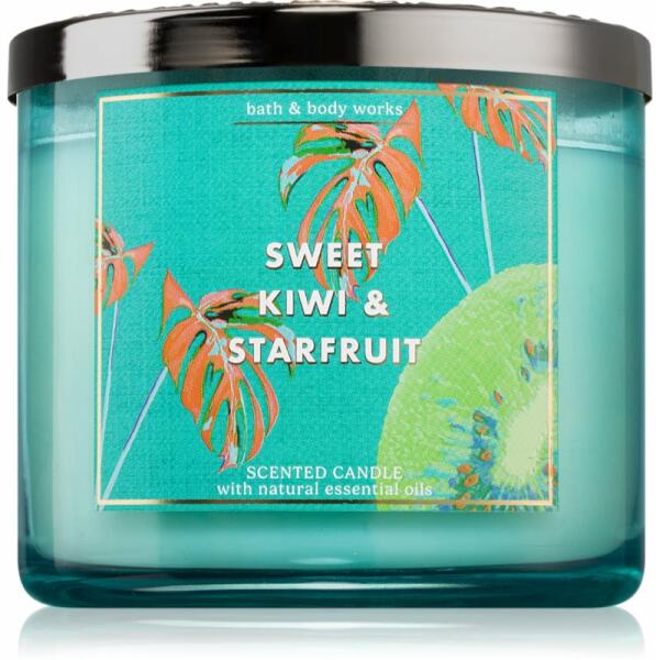 Bath & Body Works Sweet Kiwi & Starfruit, 411 g, Illatgyertyák Illatok lakásba, Az otthonát csodálatos aromával illatosító Bath & Body Works illatgyertya olyan meghitt hangulatot teremt, melynek köszönhetően mindig remekül érzi majd magát. Tulajdonságok: gyümölcsös illat trópusi illat Használata: A mécsest kellően hőálló felületre helyezze. 4 óránál hosszabb