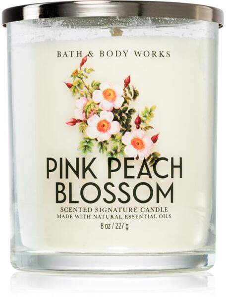 Bath & Body Works Pink Peach Blossom, 227 g, Illatgyertyák Illatok lakásba, Az otthonát csodálatos aromával illatosító Bath & Body Works Vanilla Bean illatgyertya olyan meghitt hangulatot teremt, melynek köszönhetően mindig remekül érzi majd magát. Használata: A mécsest kellően hőálló felületre helyezze. 4 óránál hosszabb ideig ne hagyja égni. Mindig vigyázzon arra