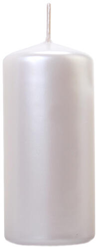 Tuskó gyertya, gyöngymetál színben. 12 cm magas, 6 cm széles a gyertya, körülbelül 20 órát ég.