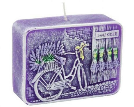 Levendula illatú és mintájú gyertya. Cseppmentes égésű.