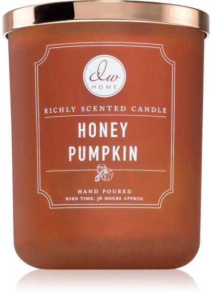 DW Home Signature Honey Pumpkin, 445 g, Illatgyertyák Illatok lakásba, Az otthonát csodálatos aromával illatosító DW Home Ocean Sapphire illatgyertya olyan meghitt hangulatot teremt, melynek köszönhetően mindig remekül érzi majd magát. Tulajdonságok: gourmand illat őszi illat Összetétel: esszenciális olajokkal Használata: A mécsest kellően hőálló felületre helyezze. 4 ór