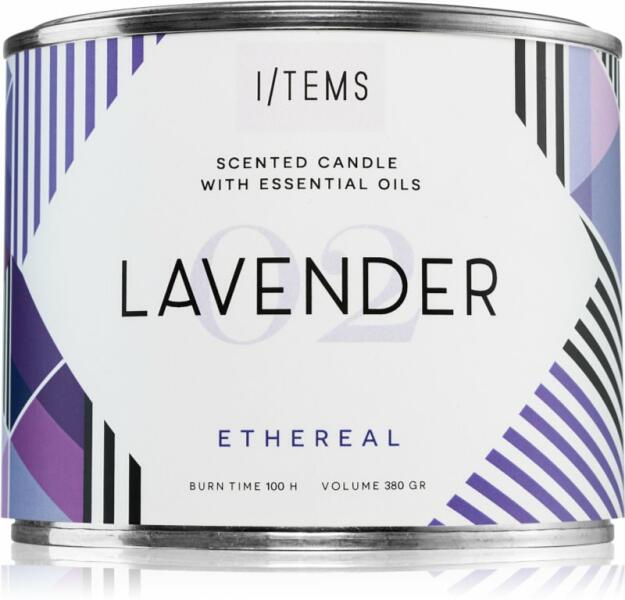 I/TEMS Essential Outdoor Lavender, 380 g, Illatgyertyák Illatok lakásba, Az otthonát csodálatos aromával illatosító I/TEMS Essential Outdoor Lavender illatgyertya olyan meghitt hangulatot teremt, melynek köszönhetően mindig remekül érzi majd magát. Tulajdonságok: virágos illat kézzel készített tiszta égés Összetétel: 100%-ban természetes összetevők paraffint nem tartalmaz