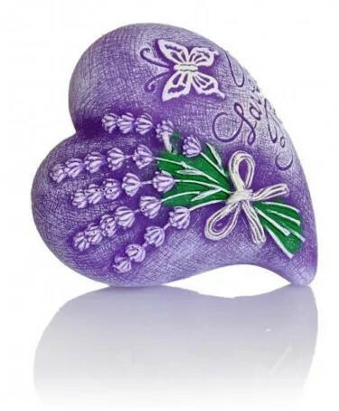 Levendula illatú és mintájú szív formájú gyertya. Cseppmentes égésű.