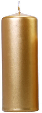 Tuskó gyertya, arany metál színben. 15 cm magas, 6 cm széles a gyertya, körülbelül 30 órát ég.