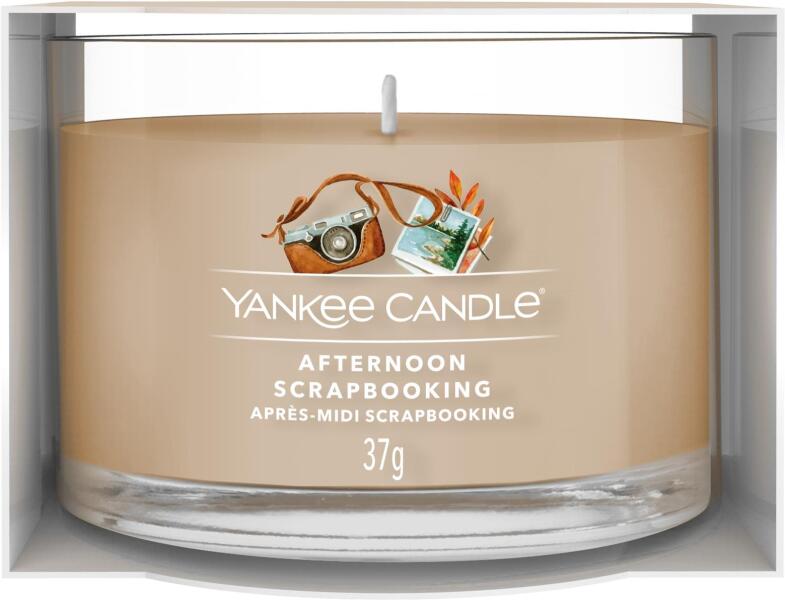 Yankee Candle Afternoon Scrapbooking, 37 g, Viaszgyertya Illatok lakásba, Az otthonát csodálatos aromával illatosító Yankee Candle fogadalmi gyertya olyan meghitt hangulatot teremt, melynek köszönhetően mindig remekül és felszabadultnak érzi majd magát. Tulajdonságok: őszi illat melengető illat Használata: A mécsest kellően hőálló felületre helyezze. 4 óránál hosszabb ide
