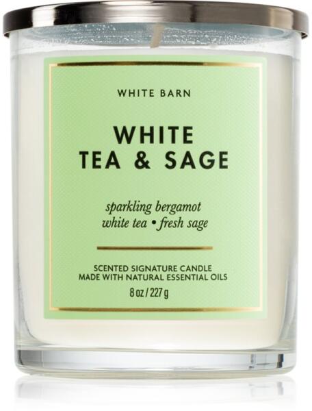 Bath & Body Works White Tea & Sage, 227 g, Illatgyertyák Illatok lakásba, Az otthonát csodálatos aromával illatosító Bath & Body Works Caramel Pumpkin Swirl illatgyertya olyan meghitt hangulatot teremt, melynek köszönhetően mindig remekül érzi majd magát. Összetétel: esszenciális olajokkal Használata: A mécsest kellően hőálló felületre helyezze. 4 óránál hossz
