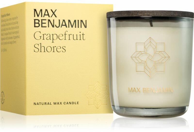 MAX Benjamin Grapefruit Shores, 210 g, Illatgyertyák Illatok lakásba, Az otthonát csodálatos aromával illatosító MAX Benjamin Grapefruit Shores illatgyertya olyan meghitt hangulatot teremt, melynek köszönhetően mindig remekül érzi majd magát. Tulajdonságok: friss illat vegán termék hosszú égési idő kézzel készített bármilyen belső tér luxus kiegészítője Összetétel: 1
