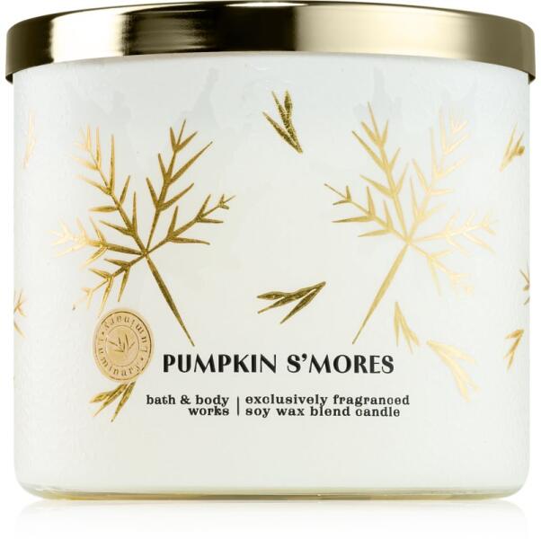 Bath & Body Works Pumpkin Smores, 411 g, Illatgyertyák Illatok lakásba, Az otthonát csodálatos aromával illatosító Bath & Body Works Pumpkin Smores illatgyertya olyan meghitt hangulatot teremt, melynek köszönhetően mindig remekül érzi majd magát. Tulajdonságok: őszi illat Összetétel: szójaviasz tartalommal Használata: A mécsest kellően hőálló felületre helyezze. 4