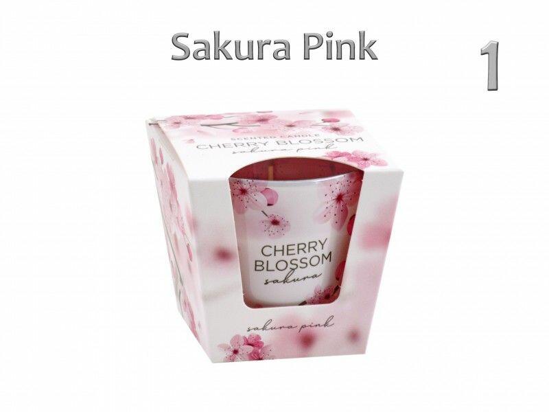Illatgyertya pohárban Cherry Blossom 8,5cm 2féle 2féle típus választhatóBefoglaló méretek 9x9x9 cmAnyaga paraffin, üveg