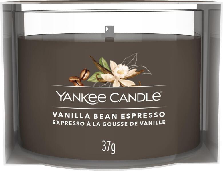 Yankee Candle Vanilla Bean Espresso, 37 g, Viaszgyertya Illatok lakásba, Az otthonát csodálatos aromával illatosító Yankee Candle Vanilla Bean Espresso fogadalmi gyertya olyan meghitt hangulatot teremt, melynek köszönhetően mindig remekül és felszabadultnak érzi majd magát. Tulajdonságok: édes aroma Használata: A mécsest kellően hőálló felületre helyezze. 4 óránál hosszabb