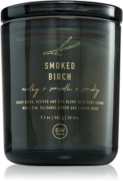 DW Home Prime Smoked Birch, 262 g, Illatgyertyák Illatok lakásba, Az otthonát csodálatos aromával illatosító DW Home Prime Smoked Birch illatgyertya olyan meghitt hangulatot teremt, melynek köszönhetően mindig remekül érzi majd magát. Tulajdonságok: melengető illat Összetétel: esszenciális olajokkal Használata: A mécsest kellően hőálló felületre helyezze. 4 óránál hossz