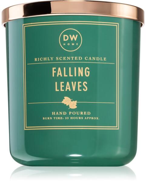 DW Home Signature Fallin Leaves, 258 g, Illatgyertyák Illatok lakásba, Az otthonát csodálatos aromával illatosító DW Home Signature Fallin Leaves illatgyertya olyan meghitt hangulatot teremt, melynek köszönhetően mindig remekül érzi majd magát. Tulajdonságok: őszi illat Használata: A mécsest kellően hőálló felületre helyezze. 4 óránál hosszabb ideig ne hagyja égni. Mindig