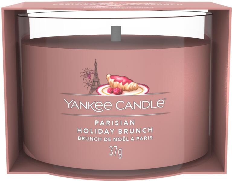 Yankee Candle Parisian Holiday Brunch, 37 g, Viaszgyertya Illatok lakásba, Az otthonát csodálatos aromával illatosító Yankee Candle fogadalmi gyertya olyan meghitt hangulatot teremt, melynek köszönhetően mindig remekül és felszabadultnak érzi majd magát. Tulajdonságok: karácsonyi aroma gourmand illat Összetétel: szójaviasz tartalommal Használata: A mécsest kellően hőálló fe
