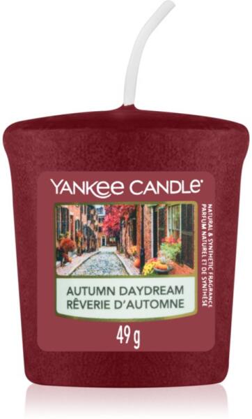 Yankee Candle Autumn Daydream, 49 g, Viaszgyertya Illatok lakásba, Az otthonát csodálatos aromával illatosító Yankee Candle Autumn Daydream fogadalmi gyertya olyan meghitt hangulatot teremt, melynek köszönhetően mindig remekül és felszabadultnak érzi majd magát. Tulajdonságok: őszi illat Használata: A mécsest kellően hőálló felületre helyezze. 4 óránál hosszabb ideig ne ha