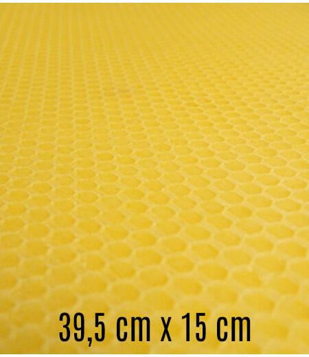 Hidegen hengerelt műlép fertőtlenített méhviaszból. Lapok mérete: 39,5 cm x 15 cm Lapok tömege: kb. 62g