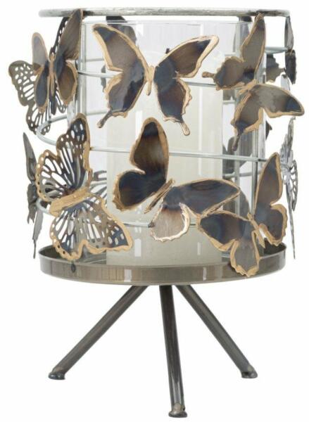 Az elegáns fém gyertyatartó megjelenését az egyedi ezüst színű pillangók teszik még inkább ellenállhatatlanná. .