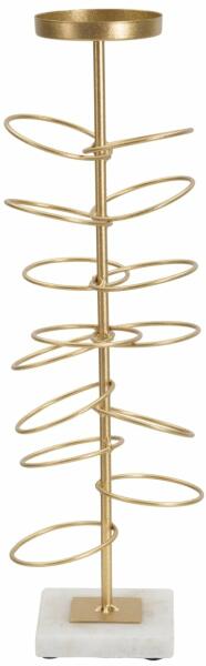 A RINGS gyertyatartó igazán látványos, egyedi dísztárgy, mellyel otthonod bármelyik helyiségét feldobhatod. A fehér, márvány talpon álló aranyszínű gyertyatartó azt az illúziót kelti, mintha karikák hada forogna a törzsén. Jól mutathat más fémes felületekkel és csillogó bársonnyal borított bútorok társaságában. A gyertyafény minden beszélgetést és családi pil