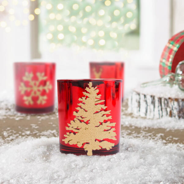 Karácsonyi teamécses pohár - 3 féle Az ár egy termék ára. Az ünnep közeledtével varázslatos hangulatot teremthet ennek az asztali teamécses tartónak a segítségével. Helyezze bele a teamécsest vagy válaszon LED-es teamécsest és máris élvezheti az átszűrődő kellemes meleg gyertyafényt. Használható bármilyen teamécsessel Biztonságos Kívül, csillogó, karácsonyi mot