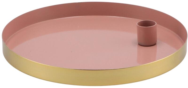 Kerek fém gyertyatartó MARAKESH asztali gyertyákhoz rózsaszín és arany szín kombinációjával, 22 cm átmérővel és 2 cm magassággal remek választás az elegáns és egyben kreatív dekorációhoz . A porfestett fémborítás luxus hatást kelt, és az arany szegély különlegességet kölcsönöz a gyertyatartónak. Tányér vagy tál formájú kialakítása révén nemcsak asztali g