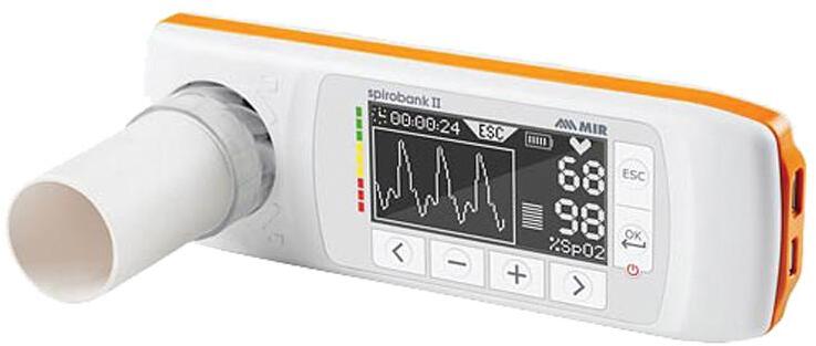 MIR Spirobank II spirométer pulzoximéterrel A MIR Spirobank II spirométer pulzoximéterrel egy multifunkciós készülék nagy, grafikus kijelzővel, mely megjeleníti az áramlás/ térfogat görbéket és a mért paramétereket. Díjnyertes külsővel rendelkezik. Komplett spirometriai labor. Méri a normál légzési értékeket, valamint az oxigén szaturációt, és pulzusszámot is. Akár