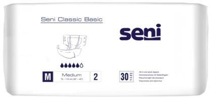 Seni Classic Basic Felnőttpelenka M-es méretben bőrbarát: a termék külső rétege légáteresztő laminátumból, az oldalsó szárnyai puha és légáteresztő szálfátyolból készültek; a bőr szabadon lélegezhet, a termék tapintásra puha szárazságérzet: a dupla nedvszívó magnak köszönhetően ragasztós tépőzárral: ami lehetővé teszi a pelenka többszöri nyitását és