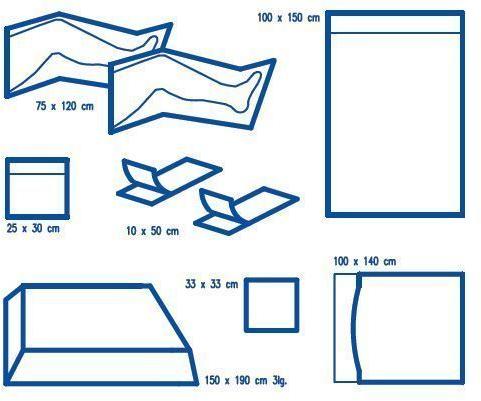 1 db Asztalterítő, 3 rétegű 150x190 cm 1 db Izoláló lepedő visszahajtott véggel, 3 rétegű 100x140 cm 1 db Ragasztós szélű izoláló lepedő 120x150 cm 1 db Ragasztós szélű izoláló lepedő 25x30 cm 25/30 2 db Lábzsák 75x120 cm 2 db Operációs ragasztó 10x50 cm 1 db Törlő 33x33 cm