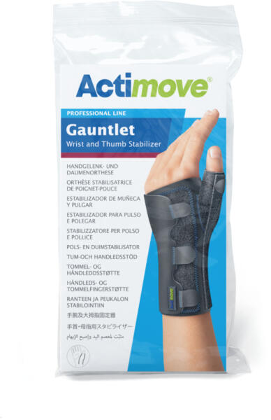 S 13-15 cmXL 20-23 cmA biomechanikus szakemberek által tervezett, négy méretben kapható Actimove Gauntlet csuklórögzítő Hüvelykujj ízületi gyulladása vagy oldalszalag szakadása esetén (síelő és gamer hüvelykujj), illetve ficamot, húzódást, rándulást követően, valamint Rheumatoid arthritis és de Quervain's ínhüvelygyulladás esetén, továbbá posztoperatív és poszttra