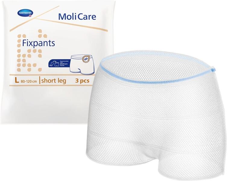 Molicare Fixpants rövid szárú rögzítő nadrág. Az inkontinencia betétek biztonságos és higiénikus rögzítéséhez, fekvő- és járóbetegek számára. Könnyű, puha, légáteresztő, rugalmas, hálós szerkezetű rögzítőnadrág, alkalmazkodik a test formájához. 60 fokig mosható. Segítségével az összes inkontinenciabetét probléma nélkül rögzíthető. .