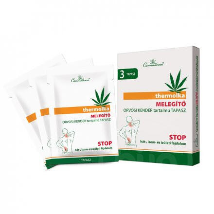 "A Cannaderm Thermolka melegíto orvosi kender tartalmú tapasz gyors és tartós enyhülést biztosít hátfájás, izom- és ízületi fájdalmak esetén, segít a vállmerevségen, a fáradt és túlterhelt izmokon és inakon. " ...