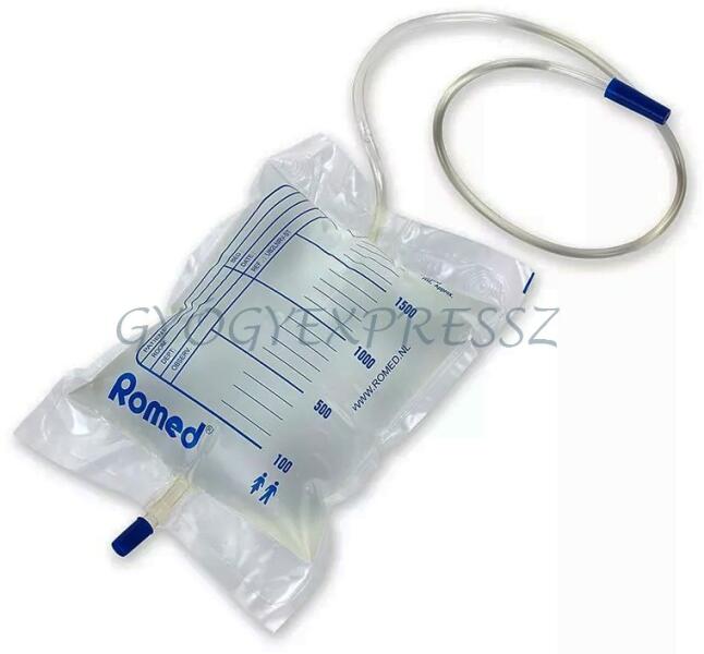 Romed 2 literes nem steril vizeletgyűjtő zsák. Kiszerelés: 10 db/csomag Mérete: 26 x 17 x 6 cm. Higiéniai termék!