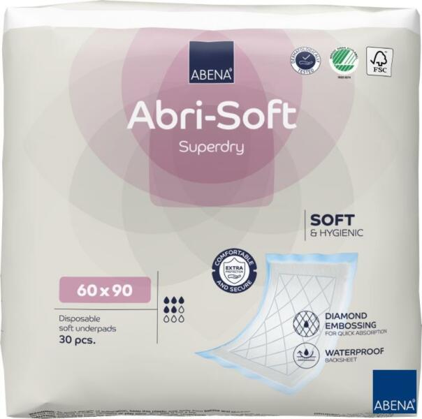 Az illatosító rendszer minimalizálja a kellemetlen szagokat. Ezenkívül a betétnek lezárt szélei vannak, hogy optimális szivárgásvédelmet biztosítsanak, a puha, nem szőtt bevonatú felület pedig növeli a felhasználói kényelmet. Az eldobható alátétek használata csökkenti a szennyeződés kockázatát. Az Abri-Soft Superdry alátétek alacsony és közepes nedvszívó képess
