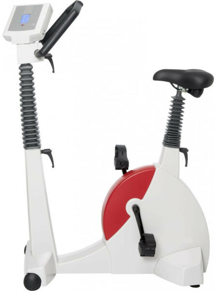 Állítható magasságú kerékpár ergométer nagy TFT kijelzővel, szinte hangtalan működéssel. - Állítható magasság 140-210 cm magas pácienshez. - Kijelző: 5 TFT, 1280 x 720 pixel - Működési mechanizmus: szinte hangtalan és karbantartás-mentes egység Poly-V szíjjal (nem tartalmaz láncot) - 360°-ban elfordítható kormányfogantyú - Fékezés: számítógéppel irányított ö
