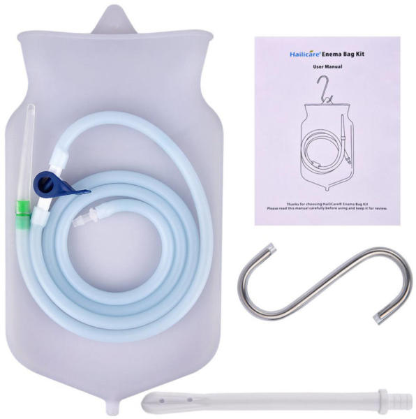 Beöntés elvégzésére használható készlet, szilikon tartállyal. Az edény: 2 literes szilikon ballon, áttetsző. Magassága 32 cm. Áttetsző anyagának köszönhetően használat közben láthatja, mennyi van hátra a beöntésből. A ballon teteje nyitott, így belseje könnyen tisztítható, kézzel bele lehet nyúlni. A mellékelt kampó segítségével tudja felakasztani a kívánt ma