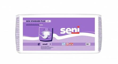 Kiszerelés: 3 csomag/karton. Felnőtt pelenka Seni Standard Plus S-es méretben Fóliás külső borítás Latexmentes De rmatológiailag tesztelt Középsúlyos és súlyos inkontinencia esetére ajánlott 55-80 cm-es derékkörméretre 30 db-os kiszerelésben