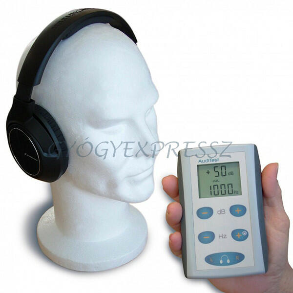 - hordozható, önálló, szűrőaudiométer légvezetéses hallásmérésére. - A teszt hang a fejhallgatón keresztül jut el a vizsgált személyhez. - A kezelő beállíthatja a frekvenciát, hallási szintet, és a jobb illetve a bal fülbe irányíthatja a teszt hangot - 11 lépéses frekvenciatartomány, mely 125 és 8000 Hz (+/-1%) változtatható - állítható intenzitás -10dB és 100