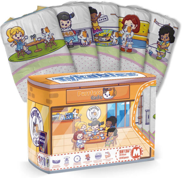Színes, mintás, fóliás külső borítású, M méretű felnőtt pelenka. Nedvszívó kapacitás 5500ml Derékbőség 79cm - 91cm Magas szivárgás védelem Megerősített elülső rész Gyors felszívódást biztosító mag Négy ragasztószalag Nedvességjelző Rugalmas derékpántok elöl és hátul