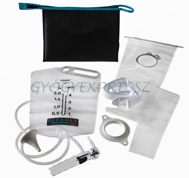 Az irrigáló készletet kizárólag orvosi utasítás alapján olyan vastagbél kivezetéssel élők alkalmazhatják, akiknek egynyílású, végleges kolosztómájuk van. Készlet tartalma: - 1 db 2 liter űrtartalmú víztartály, beépített hőmérővel, vízáramlás szabályozóval - 1 db irrigáló fej (kónusz) - 2 db leeresztő zacskó - 1 db öv 1 db nyomólap az egyrészes eszközt has