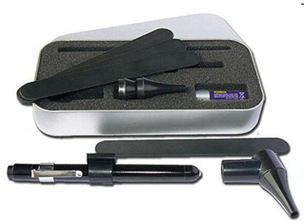 Termék jellemzői: Kicsi és könnyen hordozható pupillalámpa és otoscop egyben. Zsebben és táskában is kényelmesen elfér. - hagyományos izzóval csomagolt - aluminium tok - 3 db fültölcsér - 3 db nyelvlapoc - 2 db AAA elemmel működik