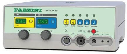 A DIATROM rádiósebészeti készülék, mely a monopoláris vágás, forrasztás, gyenge és erős koagulálás illetve bipoláris funkciók mellett mikrokoagulálásra is alkalmas 600 KHz-en. Alkalmazási terület:fogászat, bőrgyógyászat, elsősegély nyújtási sebészet, mikrokoagulálás, fül-orr-gégészet, nõgyógyászat, állatgyógyászat. Alkalmazási terület:fogászat, bőrgyógy