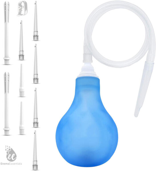 Rugalmas beöntő körte, 320 milliliteres, ami nagy méretűnek számít. A többi körtefecskendővel szemben ehhez az eszközhöz beöntőcső is jár, így hagyományos beöntő szettként is funkcionál, azaz a labdát a magasba emelve a gravitáció végzi a folyadék végbélbe juttatását. Szorítószelepet is találsz rajta, amivel szabályozhatod a folyadék áramlásának a sebességé