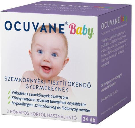 Származási ország : Magyarország OCUVANE ®BABY EGYSZER HASZNÁLATOS SZEMKÖRNYÉKI TISZÍTÓKENDŐ A csipás, vörös, váladékos szemet gyermekeknél gyakran a könnycsatorna szükülete okozza. Az elzáródás következményeként kialakuló könnycsorgás a szemfelszínen különféle kórokozók elszaporodásához és váladékozással járó gyulladáshoz vezet. Az OCUVANE ®BABY szemk