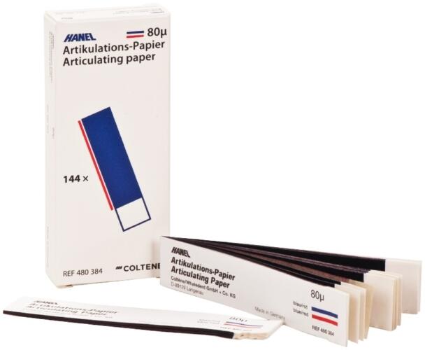 Roeko 80 mikronos, I alakú artikulációs papír, kék-piros.