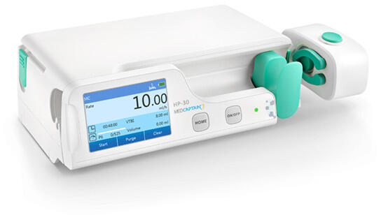 Volumetrikus pumpa HP-30 Garancia: 2 év (hosszabbítható) Márka : Medcaptain Főbb tulajdonságok Magyar nyelvű menürendszer Biztonságos alsó – és felső gyógyszerhatárok (Dose Control) Érintőképernyős kivitel 2-60 ml fecskendő felismerés 50-1150 mmHg okklúziós határok Opcionális: PCA, TCI módok MRI kompatibilis módban is kapható 0.01 ml/h – 2200 ml/h sebesség
