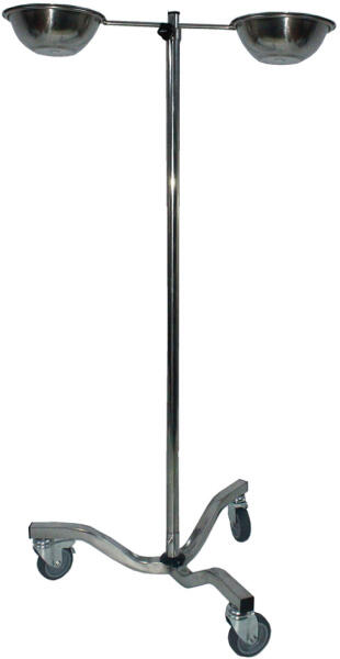 Származási ország: Románia (Erdély) Jellemzők: - anyaga: fényes rozsdamentes acél cső D25 és D20 - 25x25mm-es szögletes rozsdamentes csőből készült talp, hajlított, 3 db D75 kerékkel, ebből 1 db zárható kerék - átmérő alap: 65 cm - állítható magasság: 73-120 cm - súlya: 3,5 kg - 2 db rozsdamentes acél edényt tartalmaz, ø 24 cm, 2 liter