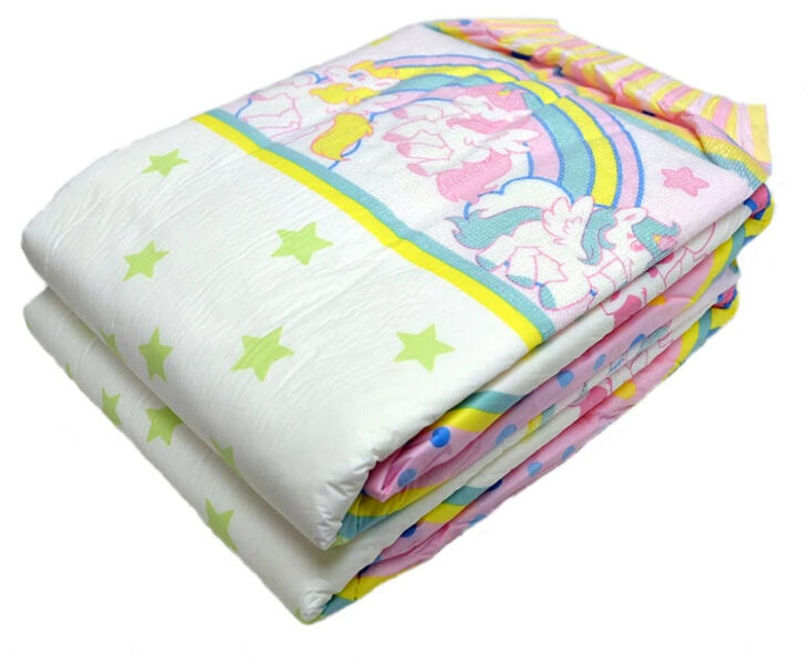 Színes, mintás, fóliás külső borítású, L méretű felnőtt pelenka. Nedvszívó kapacitás 7500ml Derékbőség 91cm - 122cm Magas szivárgás védelem Megerősített elülső rész Gyors felszívódást biztosító mag Négy tépőzár Nedvesség esetén elhalványul Rugalmas derékpántok elöl és hátul