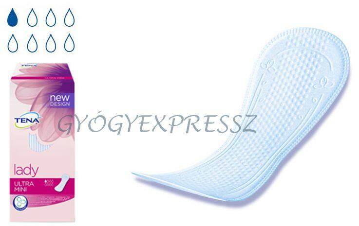 A TENA lady Ultra Mini, mely a TENA lady termékcsalád legkisebb tagja, diszkrét és biztonságos megoldás néhány csepp vagy kis mennyiségű vizelettvesztés esetére. A TENA lady Ultra Mini felső nedvszívó rétege biztosítja a szivárgásmentességet, szárazon tartja a betét felszínét. Az abszorpciós mag megakadályozza a kellemetlen szag kialakulását és védi a bőr egészség