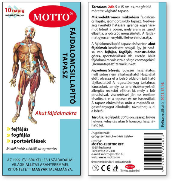 Gyógyszermentes fájdalomcsillapító tapasz. Akut ízületi, izom- és a gerincfájdalmak kiegészítő kezelésére ajánlott. A tapasz felületére felvitt ásványi anyag és a nedvesség (veríték) hatására olyan reakciót vált ki, amely kismértékű feszültségváltozást generál. Ez hatással van a bőr alatti szövetekre, elősegíti az izmok ellazulását és a fájdalom enyhíté