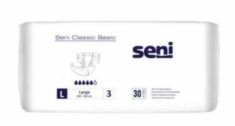 Seni Classic Basic Large egyszerhasználatos légáteresztő nadrágpelenka középsúlyos és súlyos inkontinencia kezelésére. - bőrbarát – a külső rétege légáteresztő laminátumból, az oldalsó szárnyai puha és légáteresztő szálfátyolból hagyják a bőrt szabadon lélegezni és puha a tapintásuk - szárazságérzet – dupla nedvszívó mag - a ragasztós tépőzárak lehe