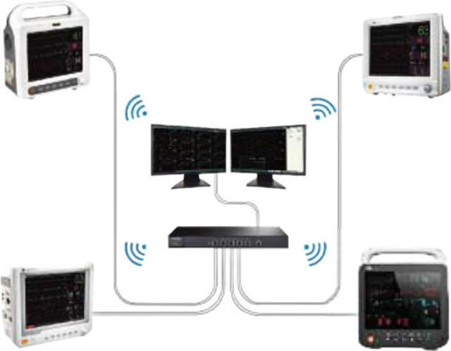 - Három típusú kábeles csatlakozási lehetőség. - Kompatibilis operációs rendszerek_ Win7 vagy újabb. - 4 / 8 / 16 / 32 / 64 ágy. - Vonal diagram rajzolása: ECG, PR, SpO2, RESP, NIBP, IBP, ETCO2. - Távvezérlés. - Riasztási beállítás. - Hullámforma megállítás. - S-T szegmens automatikus felismerés és mérés. - CE minősítés. Központi megfigyelő állomás, 4 / 8 / 16 / 3