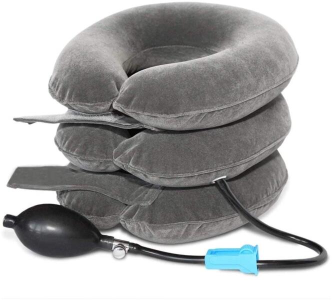 Felfújható nyaktámasz a nyaki izmok tehermentesítésére, a nyaki szakasz nyújtására! Termékjellemzők: Nyújtja a nyaki gerincszakaszt, így segíthet megelőzni a görcsös nyak- és vállizmokból eredő fejfájást. Rendszeres használatával a test megtanítható az optimális tartásra. Segítheti a sérülések utáni rehabilitációt is. Három légzsákból álló nyaktámasz. Egy